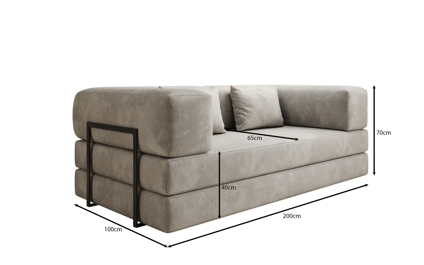 Sofa: 200 × 100 × 70 cm